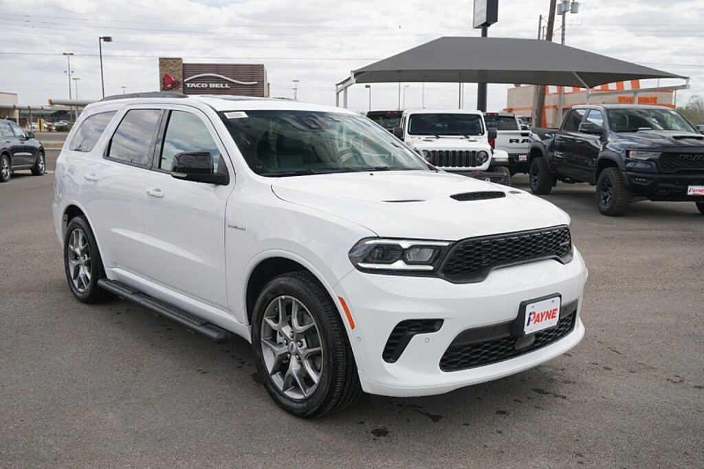 Contact Payne Alice Chrysler Dodge Jeep Ram today for information on dozens of vehicles like this 2026 Dodge Durango GT Plus HEMI V8. This Dodge includes: MOPAR BLACK TUBULAR SIDE STEPS Running Boards/Side Steps WHITE KNUCKLE CLEARCOAT MYFLEXCARE SERVICE PLAN QUICK ORDER PACKAGE 22T GT PLUS Automatic Highbeams Heated Rear Seat(s) Integrated Turn Signal Mirrors Mirror Memory Cooled Front Seat(s) Power Mirror(s) Seat Memory Luggage Rack Adaptive Cruise Control Power Passenger Seat Adjustable Steering Wheel Generic Sun/Moonroof Power Driver Seat Heated Front Seat(s) Tow Hitch Passenger Adjustable Lumbar Sun/Moonroof Blind Spot Monitor Driver Adjustable Lumbar Front Collision Mitigation MP3 Capability ENGINE: 5.7L V8 HEMI MDS VVT (STD) 8 Cylinder Engine Gasoline Fuel 2ND ROW FOLD/TUMBLE CAPTAIN CHAIRS Rear Bucket Seats Bucket Seats TRANSMISSION: 8-SPEED AUTOMATIC (8HP70) (STD) 8-Speed A/T Transmission w/Dual Shift Mode A/T *Note - For third party subscriptions or services, please contact the dealer for more information.* Want more room? Want more style? This Dodge Durango GT Plus HEMI V8 is the vehicle for you. Pull up in the vehicle and the valet will want to parked on the front row. This Dodge Durango GT Plus HEMI V8 is the vehicle others dream to own. Don't miss your chance to make it your new ride. No matter the varying terrain or weather conditions, this all-wheel drive vehicle will help you reach your destination safely and securely in a well-appointed cabin with many features found on cars twice the price.