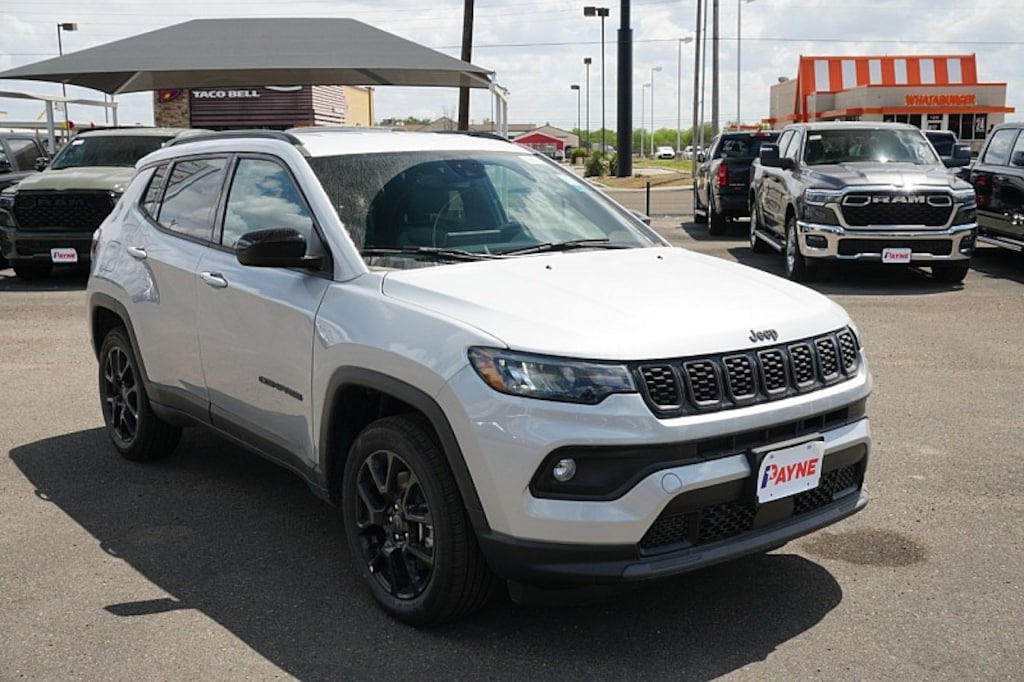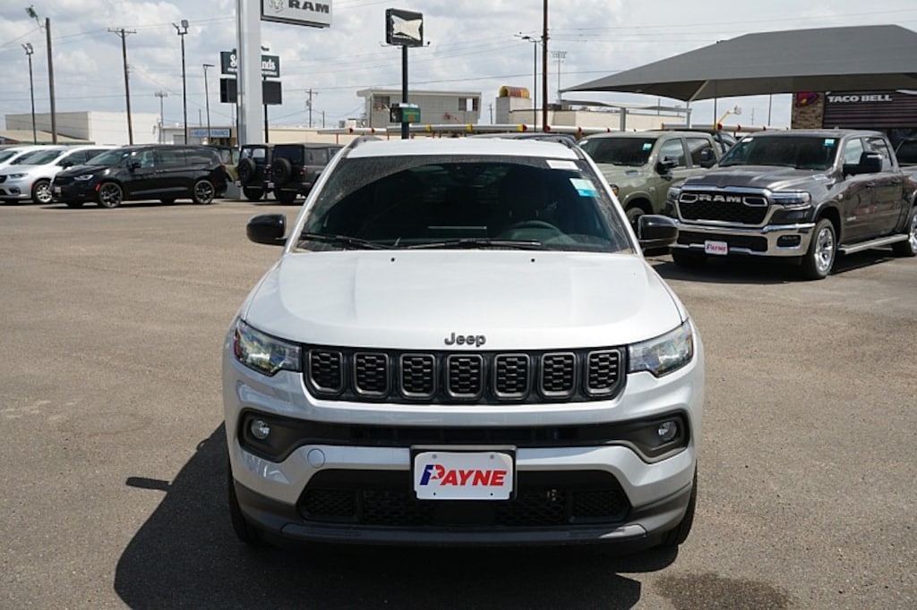 Contact Payne Alice Chrysler Dodge Jeep Ram today for information on dozens of vehicles like this 2026 Jeep Compass Latitude Altitude. This Jeep includes: MYFLEXCARE SERVICE PLAN 2.0L I4 DOHC DI TURBO ENGINE W/ESS (STD) 4 Cylinder Engine Gasoline Fuel Turbocharged SILVER ZYNITH METALLIC CLEARCOAT 225/55R18 ALL SEASON TIRES (DISC) Tires - Front Performance Tires - Rear Performance QUICK ORDER PACKAGE 29N ALTITUDE Driver Vanity Mirror Passenger Vanity Mirror Passenger Illuminated Visor Mirror Driver Illuminated Vanity Mirror 8-SPEED AUTOMATIC 8F30 TRANSMISSION (STD) 8-Speed A/T Transmission w/Dual Shift Mode A/T *Note - For third party subscriptions or services, please contact the dealer for more information.* Want more room? Want more style? This Jeep Compass Latitude Altitude is the vehicle for you. Save money at the pump with this fuel-sipping Jeep Compass. Handle any terrain with ease thanks to this grippy 4WD. Whether you're on a slick pavement or exploring the back country, you'll be able to do it with confidence.